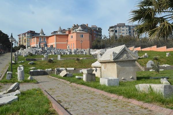 Öyle ki antik kent içerisinde mezarlar bile bulunuyor. Kyzikos Antik Kenti’nin büyük bir kısmını oluşturan tarihi yapılar turistlerin ilgisini çekmektedir.